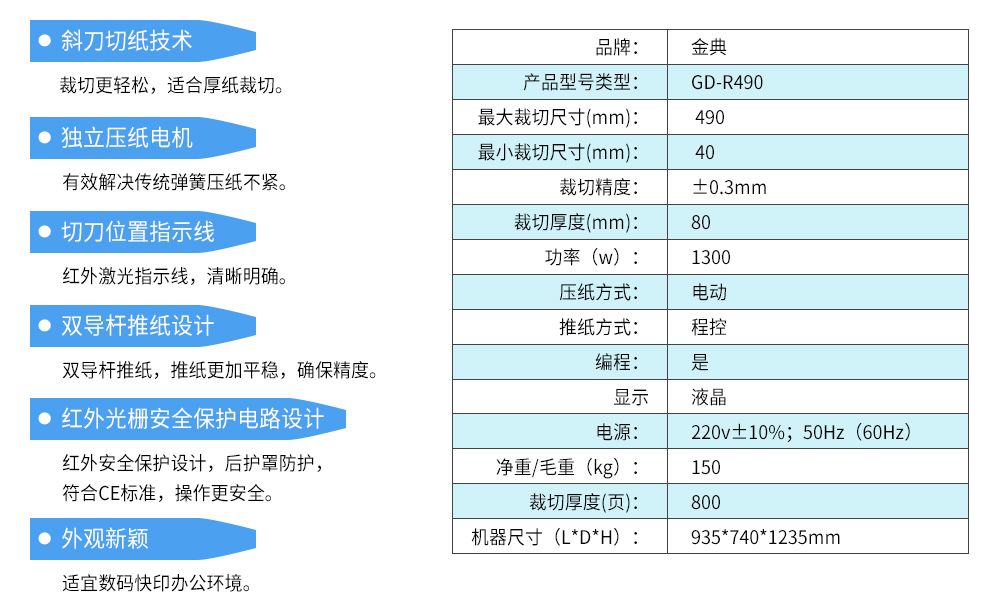 金典GD-R490電動程控切紙機
