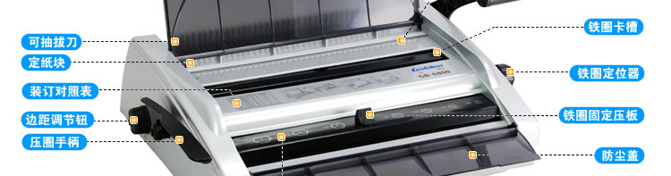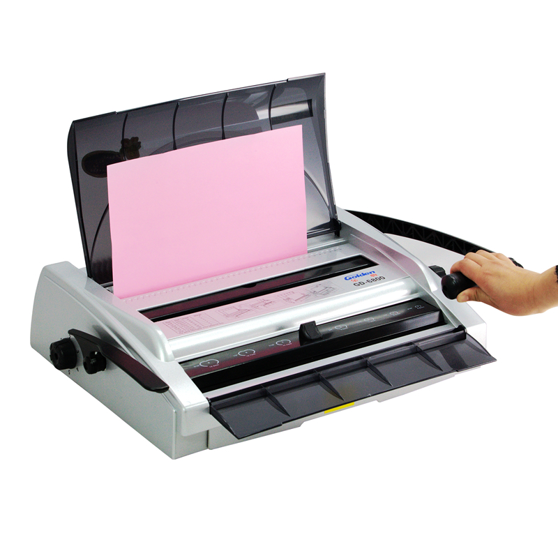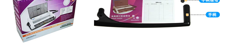 使用者可以根據(jù)所要裝訂文本的需要和個人喜好調(diào)節(jié)邊距,以達到不同的裝訂效果。 外觀搖蓋式遮罩,美觀大方,輕松防塵。打孔靜音,打孔時不會發(fā)出巨大聲響影響辦公環(huán)境;操作簡單,沒有使用過裝訂機的人也能用它輕松裝訂出美觀的文本。