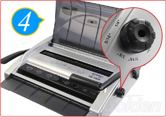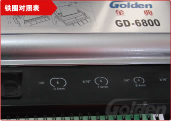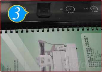 如您不了解所用的鐵圈尺寸,可將鐵圈與對照表進行對應,將鐵圈定位器調(diào)至合適的大小,不至于裝訂的文件出現(xiàn)壓過或未合攏狀況。
