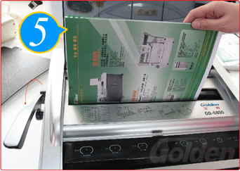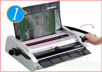 將文件整齊放入打孔槽內(nèi),下壓打孔手柄,進行打孔。