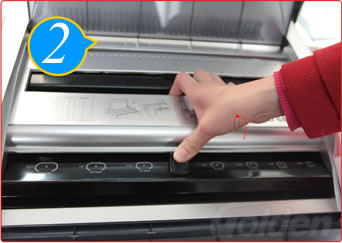 將已插入鐵圈的文本開口向下放入鐵圈槽內(nèi),下壓壓圈手柄。