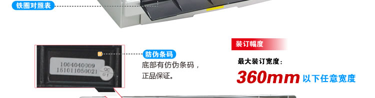 幅面寬達360mm,可裝A3文件及360mm以內(nèi)的各種臺歷和掛歷。可抽刀, 垂直打孔設計,使裝訂更快捷,使用更方便。刀口鋒利,經(jīng)過2萬次打孔測試,切紙整齊。裁刀全部采用優(yōu)質(zhì)材料和先進技術(shù),鋒利耐用,令切紙整齊,打孔不歪斜、不起毛邊。