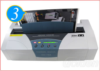 接通電源,打開電源開關(guān),將要裝訂的文本放入專業(yè)熱熔封皮中。