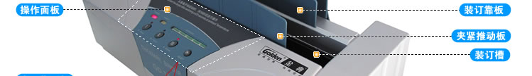將待裝訂文本沿裝訂靠板放入槽訂槽,使其平壓在發(fā)熱板上此刻夾緊推動(dòng)板會(huì)自動(dòng)加緊文本,以利于文本封脊處置于良好的加熱狀態(tài),同時(shí)INSERT燈(黃)亮。