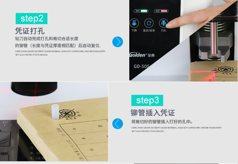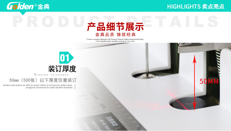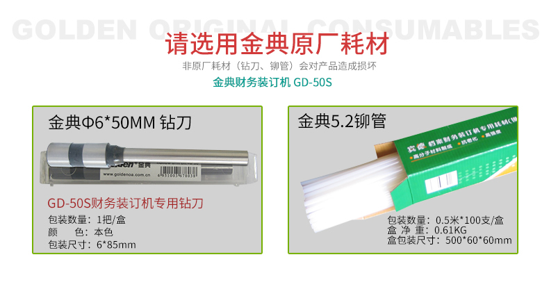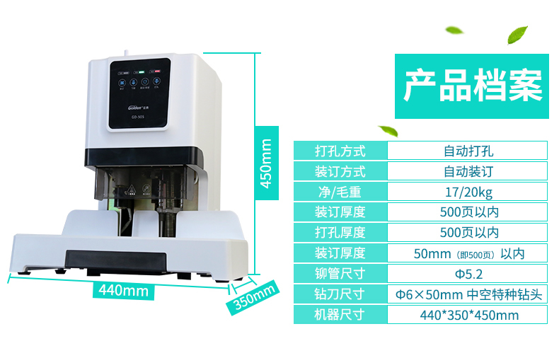 產(chǎn)品特性: GD-50S 匹配耗材: 自動 功率: 220v±5% / 50hz 裝訂方式: Φ6*50 可裝訂材料: Φ5.2 連續(xù)工作時間: 17/20 加上手柄的尺寸(mm): 410*208*136.5 毛重(kg): 500mm*335mm*566mm 產(chǎn)地: ≤2分鐘 打孔方式: 160W 工作溫度(℃): 480*375*518MM 機器凈尺寸(mm): 1-50mm 外包裝尺寸(mm): 自動