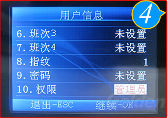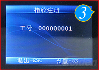 第三步:指紋注冊(cè),輸入工號(hào)跟姓名,然后按提示錄入三次指紋,最后按OK鍵確認(rèn)成功登記。