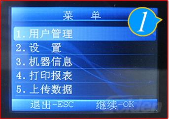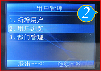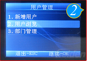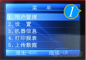 第一步:點(diǎn)MENU進(jìn)入菜單進(jìn)入用戶管理(點(diǎn)OK鍵確認(rèn))。