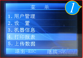 第一步:點(diǎn)MENU進(jìn)入菜單選擇打印報(bào)表(