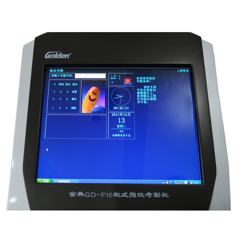 19寸液晶觸摸屏,人性化設(shè)計;立式考勤機,方便快捷。