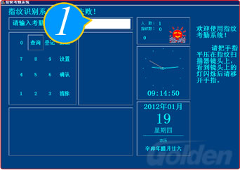 插上電源,打開電源開關(guān),顯示主界面,選擇“聯(lián)機指紋考勤簽到程序”點擊進入,顯示考勤系統(tǒng)頁面。