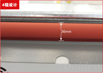 獨特的4輥設計,前面兩輥起加熱作用,后面兩輥起軋平作用,直徑26mm的超粗輥,比普通直徑為19mm的輥,加熱速度更快,塑封效果更好。