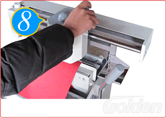 將右手柄鄉(xiāng)下壓緊壓至DN位置,以便在封底上壓上一條折線,然后將手柄推回N之位置。