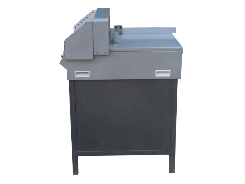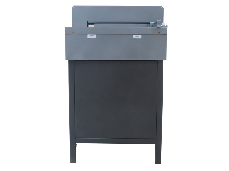 推入裁切紙張或書(shū)本,置于左邊與標(biāo)尺條靠齊,轉(zhuǎn)動(dòng)推紙手輪,調(diào)到需要裁切的尺寸,鎖緊推紙螺母。